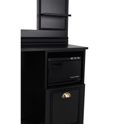 Konsoleta LEXUS to świetne rozwiązanie do salonów barberskich i fryzjerskich – bo dlaczego nie? Utrzymana w stylu art déco, nawiązuje do minionych epok i tworzy niepowtarzalny wystrój w salonie. Jest wyposażona w otwarte półki, szuflady i szafkę dzięki czemu wszystkie niezbędne narzędzia i kosmetyki będą w zasięgu ręki.