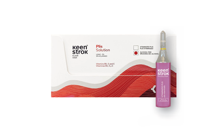 KEEN STROK PLIS SOLUTION VITAMINADO 24X15ML Preparat bogaty w witaminy B, C, E, białko roślinne i kolagen wzmacniający strukturę włosów. Wzmacnia strukturę włosa, nadaje objętości i zmniejsza łamliwość włosów. Do stosowania przed stylizacją. Bez spłukiwania.