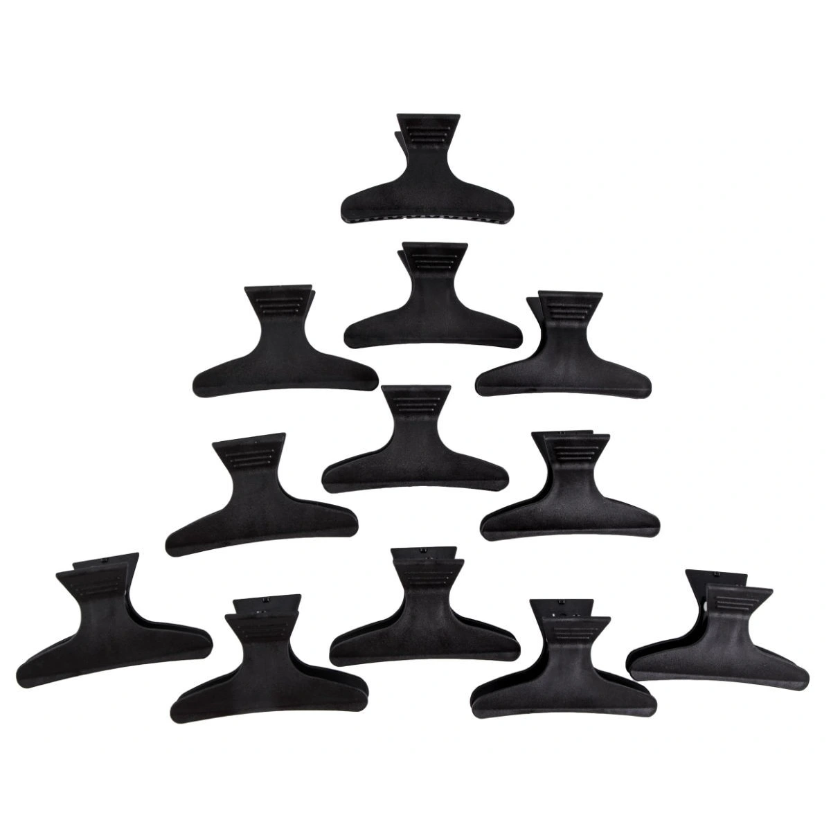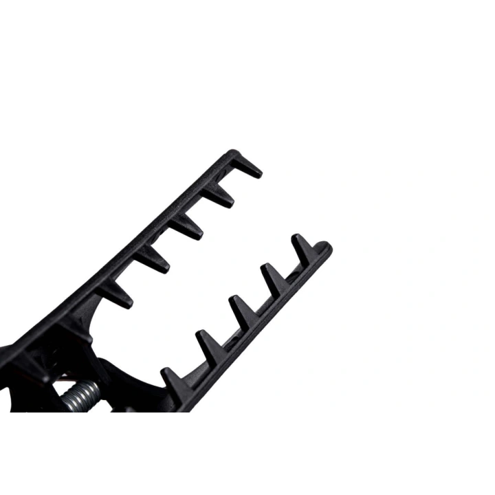 Klamry do włosów  12 sztuk Klamra do włosów doskonałej jakości, używana w profesjonalnych salonach fryzjerskich. Posiada mocną sprężynkę dla zapewnienia trwałości klamerki. Długość 8cm Kolor czarny. Opakowanie 12szt.