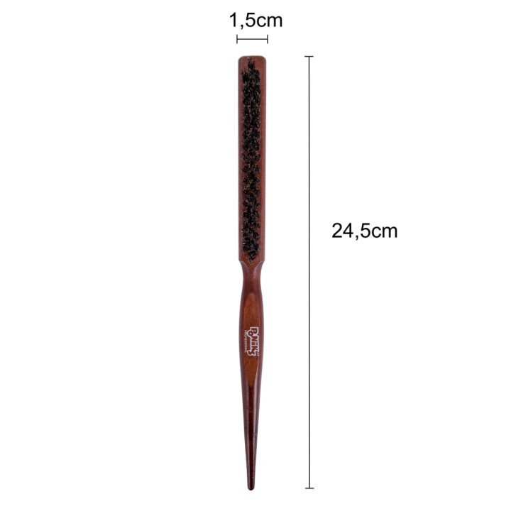 Perfekcyjna stylizacja i tapirowanie włosów! Profesjonalna szczotka kokówka Ponik’s to niezastąpione narzędzie w rękach fryzjerów i stylistów. Dzięki trzem zwartym rzędom naturalnego włosia dzika, zapewnia maksymalną precyzję przy tapirowaniu, układaniu koków i gładkich stylizacjach. Jej smukły kształt oraz drewniana, ergonomiczna rączka gwarantują wygodę użytkowania i doskonałe efekty każdej fryzury.