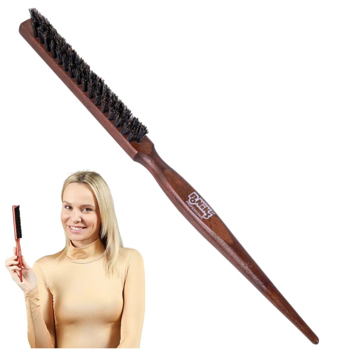 - 3 zwarte rzędy szczeciny – doskonale unosi włosy u nasady, umożliwiając precyzyjne tapirowanie i długotrwały efekt stylizacji.